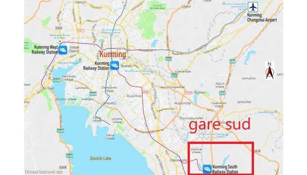 La distance entre la gare de Kunming Sud et la gare de Kunming est de 28 kilomètres. Si vous vous trompez de station, ne vous précipitez pas pour prendre un taxi ou le métro. Le trajet prendra environ 50 minutes et vous risquez de ne pas arriver à temps.