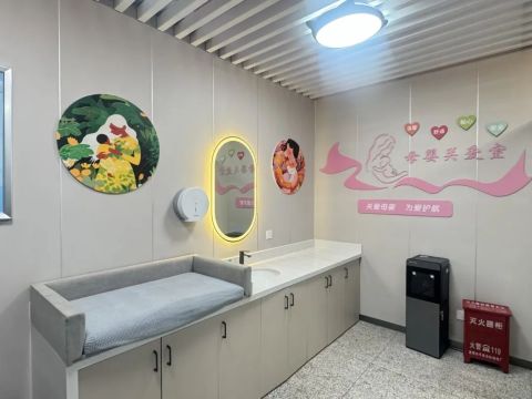 Chambre maman-bébé et l'aire de jeux pour enfants sont situées à côté de la porte 6A. La crèche est équipée d'une table d'allaitement et d'un lavabo pour permettre aux passagers de prendre soin de leurs bébés. L'aire de jeux comprend des toboggans, un cheval en bois et d'autres équipements pour les jeunes passagers.