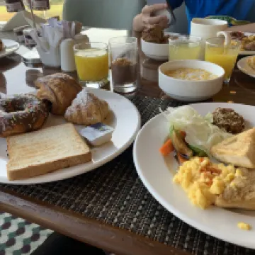 Il y a un terrain de golf juste à côté, ce qui m'a permis de profiter d'un cadre verdoyant. Les buffets du petit-déjeuner et du dîner sont copieux et variés, et on peut également y déguster une cuisine arabe.