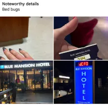 Notre expérience au Blue Mansion Hotel nous a profondément déçus et nous a coûté une fortune. Après avoir réservé une chambre sur Trip.com en mars 2025 pour un séjour en avril, notre enthousiasme s'est rapidement transformé en inquiétude lorsque nous sommes tombés sur de nombreux avis alarmants sur plusieurs plateformes, dont Google Maps, TripAdvisor et Trip.com. Ces avis, datant de 2023 jusqu'à seulement trois mois avant notre réservation, faisaient systématiquement état de problèmes de punaises de lit au sein de l'hôtel. Je joins également des photos fournies par d'anciens clients, qui corroborent ces affirmations.