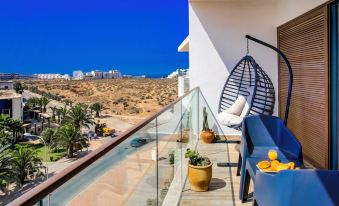 The elegantly appointed bedroom features a comfortable queen-size bed, promising a restful night's sleep after your exciting Agadir adventures. Awake to the soft morning light and step out onto the terrace to witness the stunning panoramic views that extend over the city and its finest villas.