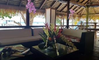 Bungalow simple mais confortable en demi pension. Lieu de ressourcement calme et serain. pour vous reposer. Activité excursion en option. Nous sommes partis faire du snorking dans le lagoon, un picnic, les pieds dans l'eau et ensuite pêche dans la lagoon. Le captain Eric était très serviable et sympathique. Le soir nous avons mangé le produit de notre pêche.