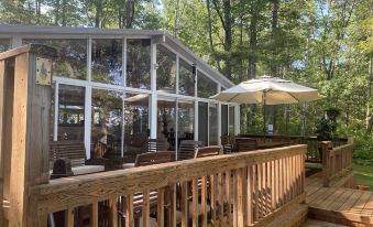 This is our second year staying here and we enjoyed it. There's a nice back deck with gas grill, sunroom, and the private beach. Bring water shoes to get past the pebbles on the beach, but we found a sandy path leading all the way to the sand bar (directly in front of the beach chairs). We spent most of our time on the beach and fire pit. The host is quick to reply to messages and cares about their guests.