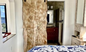 The 1st floor guest bedroom is an entirely separate space with 2 twin beds,1/2 bath plus private outdoor shower. Beautiful beach views from its cozy sitting area. (Twin beds can be combined into a king if desired but space is tight in this configuration). Please be aware the downstairs guest half-bath does not have a separate door from the bedroom area but the toilet is tucked discreetly around a corner. Outdoor front patio with beach views is great for relaxing and enjoying the breezes.