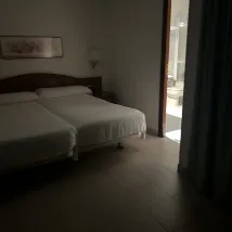 El hotel se nota que es viejo, el servicio es muy amable,hay muchas cosas que cambiar en el baño la ducha muy pequeña y con algo de moho y la bañera de la otra habitación también,las camas no están nada mal las almohadas para mí gusto muy blandas ,para pasar unos días está bien.