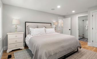 Relax in The Heritage Suite, a pristine FIRST FLOOR 3 bedroom, 3 bath, fully renovated apartment with stunning historic details and charm. Appointed with everything you need for a comfortable stay, including laundry!