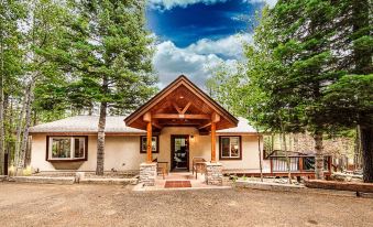 Surrounded by tall pines and conveniently located off HWY 434 in the Angel Fire Resort, this Mountain Retreat is close to the golf course for summer fun and only minutes away from the ski lifts in winter. Lots of greenbelt trails are nearby for hiking and biking in the summer or snowshoeing in the winter and don't forget about cross country skiing in the winter on the nearby golf course. Monte Verde lake is also within walking distance for all your summer time lake fun (fishing, stand up paddle boards, pedal boats, or relaxing on the lakeshore...) The paved drive-through driveway allows for easy year round access ( but still recommend AWD/4WD in winter unless you have chains available).