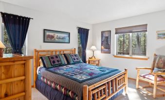 This cozy beautifully furnished home has 3 bedrooms. The main bedroom has a queen bed and twin trundle (best for kiddos) with an an ensuite bathroom and a beautifully tiled walk in shower. The spacious common area boasts a wood-burning fireplace surrounded by stone, vaulted tongue-and-groove ceilings, large wooden beams and hardwood floors with plenty of room to spread out and enjoy the beautiful scenery and wildlife outside the windows flanking the fireplace. The kitchen has stainless steel appliances, granite counter tops, bar top seating and an island useful for preparing delicious meals in the well stocked kitchen. The adjacent dining nook is surrounded by windows thru which all of the outdoor beauty can be enjoyed. There is also a large wrap around deck for watching the wildlife as you enjoy your favorite beverage and an amazing flagstone patio area with an additional wood-burning fireplace.About pets:No pets allowed.About checkOut:Check out before 10:00 AM.About children:Children allowed: ages 0-17.No safety gates, high chair, pack n play....About customRules:We have a septic system-NOTHING should be flushed besides toilet paper-NO "flushable" wipes, no tampons, no dental floss....Please take trash to the Angel Fire "Recycle Park" 388 Mountain View Blvd. If more than 2 bags are left, there will be an additional charge.,TRASH COMPACTOR NOT CURRENTLY WORKING -please do not place any items in compactor. Thank you..About checkIn:Check in after 4:00 PM.About smoking:Smoking is not permitted.About minBookingAge:Minimum age to rent: 22.About events:No events allowed.