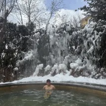 The staff (小张和小邹) offered excellent service, and the dining options featured a tasty mix of local and international dishes. One of the highlights was the outdoor hot spring, which was awesome in the freezing winter!