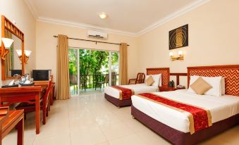 房間挺大的,設施陳舊,冰箱不能用,空調噪音大,最大的問題就是沒有被子衹有一個床單,不開空調熱,開了空調冷!晚餐在泳池邊雖然品種不多,但是口味還不錯,有現炒的意麪,早餐相對來説簡約了點