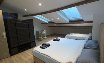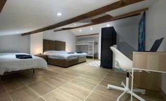 2 chambres : 2 lits superposés 1 lit simple 1 canapé convertible et 1 lit double