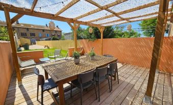 - You will have access to a 30m² wooden terrace equipped with garden furniture and a large table (seating 12); All in the shade under a wooden structure (photos to come)