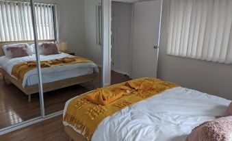 This one-bedroom 55sqm guesthouse can comfortably accommodate 4 adults, with the lounge converting to a queen-sized bed. We also have a single mattress available to extend the capacity to 5.