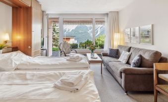Petite résidence "Promenade (Utoring)". Dans la localité, à 500 m du centre, situation tranquille. Infrastructures de la Maison: salon, ping-pong, kiosque, ascenseur, local pour les skis, chauffage central, lave-linge (en commun). Accès en voiture jusqu'à la maison (route de montagne). En hiver, merci de prévoir des chaînes, en hiver 4x4 recommandé. Place de parking (nombre de places limité, en sus) près de la maison, garage en commun (en sus), parking public couvert à 800 m. Magasins 500 m, arrêt de bus "Arosa, Rathaus" 400 m, gare ferroviaire "Arosa" 1 km. Remontées mécaniques, pistes de ski. Piste de luge 500 m. Service de livraison disponible. Jolis sentiers de randonnée au départ de la maison. Attention: les places de parking ou de garage doivent être préalablement réservées auprès du responsable des clés: place de parking 5.00 CHF / jour, place de parking couverte 8.00 CHF / jour, place de garage 16.00 CHF / jour. Salon commun avec accès Internet (WiFi). Forfaits de ski disponibles à la réception.