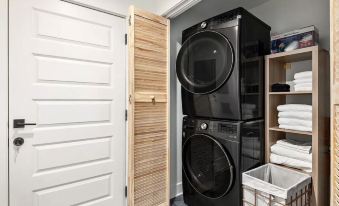 Your Asheville adventure begins at this 1-bedroom apartment. Step inside and be greeted by the excellent king bed in the cozy bedroom. The pleasant living room offers additional space with a sofa bed and crib bed. Enjoy the enjoyable amenities such as a washing machine, hair dryer, WiFi, and more. Refresh yourself in the bathroom equipped with a hair dryer and shower. We hope you'll enjoy your stay at our apartment.