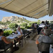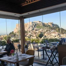 Highlights: beautiful views of acropolis and surrounding area from rooftop bar/restaurant space (also where breakfast served), buffet of good standard and restaurant staff very polite and a credit to the hotel.