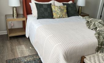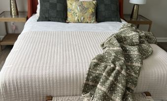 2 bedroom(queen bed in each)/2 ensuite bathroom(towels/linens provided), queen sofa bed (2" memory foam mattress topper available), full kitchen w/eat at bar, 2-4 person bistro table for dinning, coffee bar w/Keurig, toaster oven/air fryer combo, dishes, flatware, drinkware, full size washer/dryer, free Wi-Fi, smart TV (basic cable & ready for streaming), iron/ironing board, handheld clothes steamer, hair dryer(1/bathroom), starter supply of toilet paper, paper towels, laundry supplies and dishwasher detergent, shampoo/conditioner/body wash provided. NOTE: This is a second floor unit & requires you to walk up a flight of stairs to access, keep this in mind for guests with limited mobility. Also, given its a second floor unit and there are tenets above. There is a Ring camera on the front door for the safety of our guests.