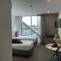 酒店位置稍偏,但是周邊配套算是齊全,樓下就有一家麪館可點大碗寬麪,還有家燒烤店,雞肉炒飯不錯。1.5公里處有Westfield商業綜合體,超市、商場、酒吧、電影院齊全,這些邊上還有一家Chemists。酒店200米處就是Albany bus station,出行很方便。酒店房間內配置了電磁爐,烤箱,可以自己做簡單的餐,我自己煎了還幾頓羊排,加上白葡萄酒,比外面吃好多了,且便宜。總的來説體驗👌不錯。但是,木有一次性牙刷拖鞋這些,需要自備。