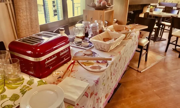 Vous pourrez déguster des crêpes, du chocolat chaud ou du vin chaud près de la cheminée à foyer ouvert dans le salon de thé. Pendant votre séjour à l'hôtel Les Ailes, vous pourrez déguster un petit-déjeuner buffet tous les matins.