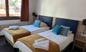 Hôtel familial, situé en plein centre d'Auron face à la patinoire. Idéal car à 30 m du départ des cabines du teleriou pour arriver aux pieds des pistes. Il y a un local pour le matériel de ski. Ns avions une chambre pour 1 nuit côté montagne avec une petite terrasse ensoleillée (table et 2 chaises). La chambre est petite (passage très étroit entre le lit et le bureau) mais WC séparés, tv avec Canal+ et wifi. Petit déjeuner au top avec du sucré et du salé, très bien garni sous forme de buffet. Aucun problème avec l'humeur du patron puisque certains commentaires en font allusion. Il a été sympathique et a de l'humour, il dit un peu tt haut ce qu'il pense. Ns retournerons avec plaisir dans cet établissement.