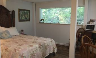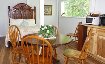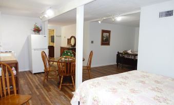 Enjoy a full kitchen with microwave, stove, refrigerator, toaster, and a Keurig coffee maker. This quiet, open concept apartment is located on the corner of storage building and the owners' home is located on the property to assist with any needs during your stay. $195.00/night for 2 guests. Additional guests will be charged $35.00 per person/ per night.