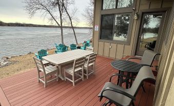 Year round fun for all ages at a huge lakefront property just 79 miles from Minneapolis with easy access off I-94! Relax at a 4,000+ SF home that features a private dock with a sandy private beach, non-motorized water toys and a gaming garage while comfortably sleeping up to 17 guests!