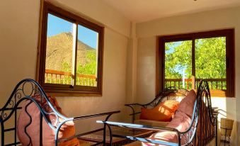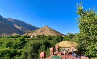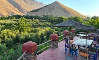 Le gîte se situe en montagne au calme par contre prévoyez du temps pour vous y rendre de Marrakech. Une foie sur place le gîte est super l'accueil au top on vous chouchoute.la vue sur la montagne est superbe. Ibrahim le cuistot est super il ne sait pas quoi faire pour vous faire plaisir.