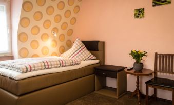 Das Zimmer war sauber, das Bett war bequem. Mehr war leider nicht, es gab nicht einmal eine Lampe abgesehen von der (sehr hellen) Deckenbeleuchtung. Da unser Zimmer zur Straße lag, wurde es bei offenem Fenster nachts leider etwas laut, wofür die Pension natürlich nichts kann. Was das Personal aber ändern könnte, sind Freundlichkeit und Frühstück - beides verbesserungsfähig. Fazit: Eine Übernachtung ist o.k., wenn man in der fussläufigen Innenstadt etwas vor hat. Länger eher nicht.