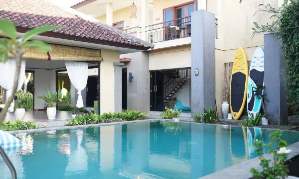 We stayed at this guesthouse for three weeks. The room was very spacious with a separate wardrobe, shower, and toilet. It was bright and cozy, with only one downside: you have to get used to the roosters crowing in the morning. The grounds of the guesthouse are quite large, featuring a dining and work lounge, a lovely swimming pool, a cozy yoga room, and hammocks. There is also a kitchen available. Our stay included breakfast, which was diverse and very delicious. The hosts were very friendly and kind; we felt at home. P.S. The cutest puppy in the world also lives here! Thanks Iva and her colleagues for the great service.