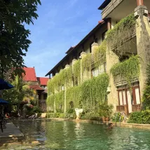 Small friendly comfortable hotel with great pools in lush gardens. Good size rooms. Best breakfast yet. Just outside the gated area, so still has Bali charm with enough good restaurants within walking distance. Shuttle to private beach in prime location. We will be back. Easy taxi ride to airport.
