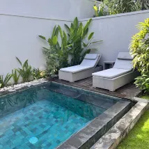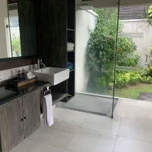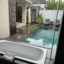 The villa is clean and tidy. Got own pool but the water is cold for a dip. The shower is outside nearby the pool which is convenient and around the garden area to take hot shower first before swimming in the pool. The staffs are nice,kind, helpful with attention to details.