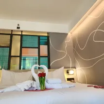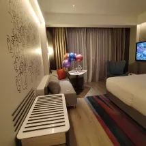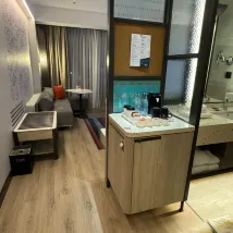 L'hôtel est très pratique, juste à côté du centre commercial, ce qui est vraiment un atout. Le service était excellent. Dès notre arrivée, voyant que nous avions des enfants, ils nous ont offert des glaces. Même si nous étions un peu inquiets à cause des rumeurs de "maladie de l'eau sale" et ne les avons pas prises. Les installations sont bonnes : il y a une piscine et une salle de sport, toutes deux au rez-de-chaussée. Nous avons passé beaucoup de temps à jouer dans la piscine avec les enfants, et même si l'un d'eux a bu un peu d'eau de la piscine par accident, il n'y a eu aucun problème. Tout était parfait.