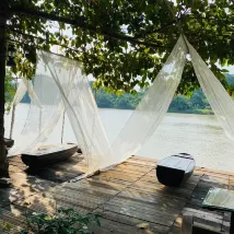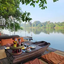 Détendez-vous dans une chambre à thème thaï, chinois ou Mon, chacune avec son propre décor unique. Enfilez ensuite votre tenue Mon. Savourez un repas relaxant en sirotant un thé et en dégustant des en-cas au bord de l’eau. 🍵🌤️