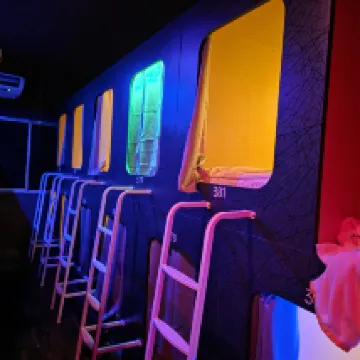 Cette auberge est en fait une pièce dans le sauna 1/0, ou a été rajoute une trentaine de lits capsules. Tout le reste des équipement sont ceux du sauna. Il ne faut donc pas s'attendre à une hostel au sens classique du terme, mais bien à une extension du sauna.
