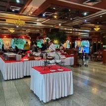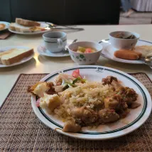 Le petit déjeuner n'est pas varié mais peut être mangé. Le personnel féminin du restaurant n'est pas très poli. Je mangeais et j'ai été soudain informé que cette table avait déjà été réservée. Même s'il n'y avait aucun signe Puis il a pris notre assiette et l'a posée sur une autre table. Quand nous avons parlé, il m'a crié « désolé » au visage et s'est éloigné. Vous pensez probablement que nous sommes des étrangers. Donc je me fiche des manières.