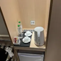 Le principal inconvénient était le manque de prises de courant. Il n'y en avait que trois au total : une près du sèche-cheveux dans la salle de bain, une près de la bouilloire et une au bureau. La prise de courant au bureau était fonctionnelle mais bancale, ce qui rendait difficile le maintien des prises en place, même si la charge fonctionnait toujours. De plus, il n'y avait pas de prises près du lit, ce qui était gênant.