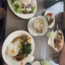 La surpopulation était un autre problème majeur. En raison du grand nombre de groupes de touristes chinois et de l'étroitesse de la salle à manger, le petit-déjeuner ressemblait à une véritable bousculade. Je recommande d'y aller après 8 h pour éviter les heures de pointe. La qualité de la nourriture était également médiocre : les salades manquaient de fraîcheur et les plats chauds étaient fades. La seule option valable était l'omelette préparée à la commande, mais il n'y avait qu'un seul chef, ce qui rendait l'attente longue.