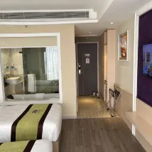 L’hôtel est situé à côté d’une station de métro et le centre commercial Big C est accessible à pied. Cependant, je ne recommande pas le salon de massage situé dans le centre commercial : l’espace était exigu, les thérapeutes parlaient bruyamment et les serviettes ne semblaient pas être changées entre les clients.