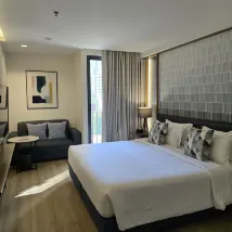 Super hôtel. Tout d'abord, le personnel était incroyable. Chaque interaction avec le personnel a été positive. Ils sont constamment allés au-delà de leurs attentes. La chambre était très propre avec un lit et des oreillers confortables. Merveilleux équipements de douche et de salle de bain. La piscine sur le toit est idéale pour une baignade en soirée avec une belle vue. La salle de sport dispose de tout ce dont vous avez besoin pour un bon entraînement. Un espace de travail était disponible et était très confortable si vous en aviez besoin. 10 min à pied d'Emsphère. L'hôtel propose une navette vers le terminal 21 ce qui est très pratique. 7/11 à seulement 2 minutes à pied et il y a aussi des cafés et des restaurants à proximité. Je recommande vivement cet hôtel et j'y retournerai certainement.