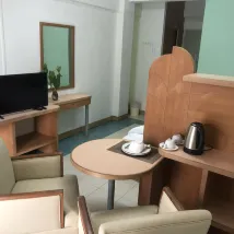 À l’écart de la circulation, l’hôtel est calme, le personnel sympathique et les chambres propres, nettoyées chaque jour. Le petit déjeuner propose 3-4 plats chauds, des crudités, pain , beurre, confiture avec thé et café. Il manque des œufs sinon c’est tout à fait correct pour le prix.