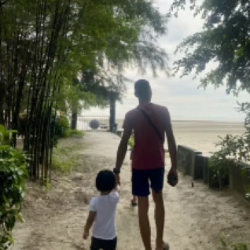 Spacious room with classic vibe. Registered for two adults but can fit until 3 paxs of children 👍 Cheaper than others. An evening sunset was beatiful and calm. we are so happy with this short vacay ! Got big bathtub inside the bathroom too ( can fit 2 adults ) 🤭Definitely would come again 👍