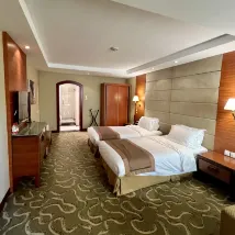 L'année dernière, j'ai séjourné dans le salon et je m'en suis senti bien. Cette année, j'ai encore choisi Jianguo. Je ne m'attendais pas à ce que la chambre à l'arrière qui m'a été attribuée cette année ne soit pas une bonne expérience ! L'autoroute nationale est trop fréquentée et la conception des toilettes est très déraisonnable ! Je me sens très mal à l'aise. Xiao Feng, du service de conciergerie, a pris l'initiative d'aider avec les bagages. Je suis parti précipitamment le matin et je n'ai pas plié mon pyjama. Le préposé à la chambre a soigneusement plié mon pyjama et l'a posé sur le lit lorsqu'il a nettoyé la chambre. C'était très chaud.