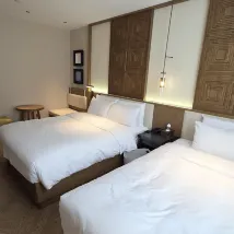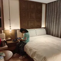 Pour être honnête, les installations sont assez récentes et l'emplacement est bon, à dix minutes à pied de l'hôpital Union. Je soulignerai cependant quelques défauts : l'insonorisation laisse à désirer, mais ce n'est pas un problème majeur. J'avais réservé une chambre twin, mais lors de la confirmation, on m'a demandé si nous étions trois dans une chambre king-size, ce qui m'a laissé entrevoir un problème.