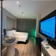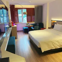 Très satisfait du service et de l'attention du personnel envers les clients. La chambre comprend des boissons et des fruits gratuits, ainsi que des commandes technologiques innovantes pour les interrupteurs. L'hôtel est situé entre les lignes 6 et 8 des deux gares, à 8 minutes à pied, et est accessible à pied jusqu'à la rue des restaurants de Shichahai.