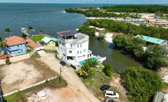 Détendez-vous dans ce confortable studio au bord de l'eau avec vue sur la mer, situé à 8 km de l'aéroport et du centre-ville de Belize City. Il dispose de la climatisation, d'un ventilateur de plafond, de lits queen et double, d'une télévision, d'un ensemble de salle à manger, d'un grand réfrigérateur, d'un micro-ondes, d'un meuble avec vaisselle, d'une grande commode avec miroir, d'un placard, d'un jardin, du Wi-Fi et d'un accès à notre piscine à débordement de 12 m x 4,9 m avec terrasse sur pilotis, tables de pique-nique et barbecue.