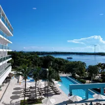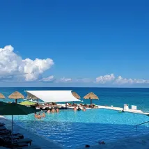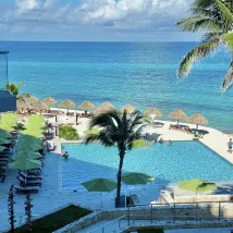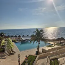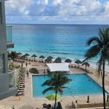 This will be the fourth time I have stayed at this hotel and I will say that it's getting old. The resort has five pools that were all hot. The surrounding beach in the area is 20 ft deep and seaweed and you can't enter the water. Also if you can imagine the hotel makes you check out at 10:00 a.m. which screwed up my sleeping pattern for the day of checkout. What hotel makes you check out at 10:00 a.m.? By the way check in time isn't until 4:00. So if you're staying for one day you only get 18 hours of hotel. Some of the rooms are redone and some of the rooms have got the original flooring from when I stay there the first time around 25 years ago. My room had the original flooring. The first room that reception gave me was on the first floor at the absolute end of the resort. The room was run down and the floor looked like it was buckling a little . The second room reception gave me had a foul odor. Food and drinks at this hotel are extremely expensive. I want to say that a margarita is around 13 to 17 US dollars give me a break. Do not order an a la carte breakfast there because they pick it off the buffet and it's going to be cold. I want to say breakfast is 550 pesos a person. Breakfast was fine but nothing special. They don't offer cappuccino or lattes as a courtesy for breakfast. By the way it takes reception around 15 minutes per customer to check you in. I have stayed at this resort a total of four times and I would not go back. The beach is infested with seaweed farther than the eye can see there's no place swimmable by this resort. I would say it was quite disappointing. By the way they have a little market in the resort and a $6 bottle of champagne in Los Angeles cost $53 in their ghastly overpriced market. Very bad value for money. My third room was acceptable. I do have to say I think the rooms are big and the gentleman that checked me on did give me an upgrade to a balcony on the lagoon side so that was something. I paid a round $140 USD a night with tax and really it was a 85 US dollar hotel at best. It doesn't meet Westin standards. There was also an area with a little chip paint in my room but I'm probably being somewhat nitpicky. The light in the room is also not very bright and made it somewhat hard to read.