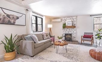 **During the summer months (May - October), we add goats, sheep, chickens and a couple cows to the field in front of the cabin. Feeding the goats is a guest favorite! *During winter months, the animals are not on site.