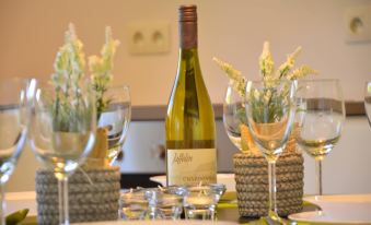 L'appartement dispose d'un salon chaleureux avec poêle à bois, d'une cuisine bien équipée et d'un balcon ensoleillé. Vous pourrez profiter d'un grand jardin paysager partiellement clôturé (partagé avec d'autres locataires), avec un espace barbecue, un bac à sable, des jeux et une table de ping-pong pour des après-midis agréables. L'aménagement est particulièrement adapté aux enfants et idéal pour se détendre en pleine nature.