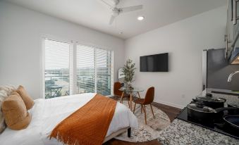 Welcome to our Exquisite Studio | DT Birmingham w Private Balcony! Situated in the heart of downtown, this stylish studio offers modern comforts and a serene escape. Enjoy meals at the dining table, work comfortably at the provided workspace, and rest easy in the queen-sized bed. With downtown attractions just steps away, it's the perfect base for your Birmingham adventure. Book now for style, convenience, and comfort!