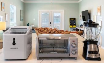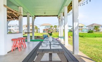 Escape to our 4-bedroom, 2-bath beach house on the beautiful Bolivar Peninsula just steps away from Crystal Beach. Perfect for families or small groups, this retreat boasts a modern interior and kitchen, comfortable beds and linens, and endless entertainment including a hot tub, outdoor movie theater, arcade game, ping pong, putt putt, boogie boards and beach essentials, fire pit, BBQ and more! It's the perfect escape in winter or summer!